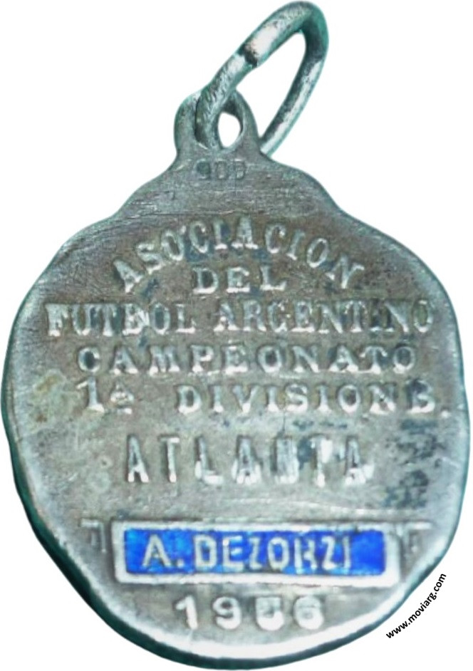 Anverso: Campo: AFA Reverso: ASOCIACION / DEL / FUTBOL ARGENTINO / CAMPEONATO / 1A. DIVISION B / ATLANTA / [ A. DE ZORZI ] / 1956. Exergo: [ 900 ] Referencia: | |