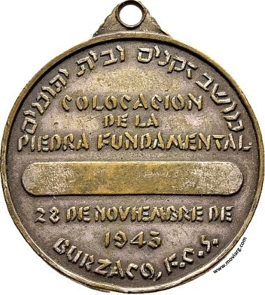 Dr. Busso Peus Anverso: HOGARES PARA ANCIANOS Y NIÑOSReverso: COLOCACION / DE LA / PIEDRA FUNDAMENTAL / 28 DE NOVIEMBRE / 1943 / BURZACO, F.C.S. Referencia: | |