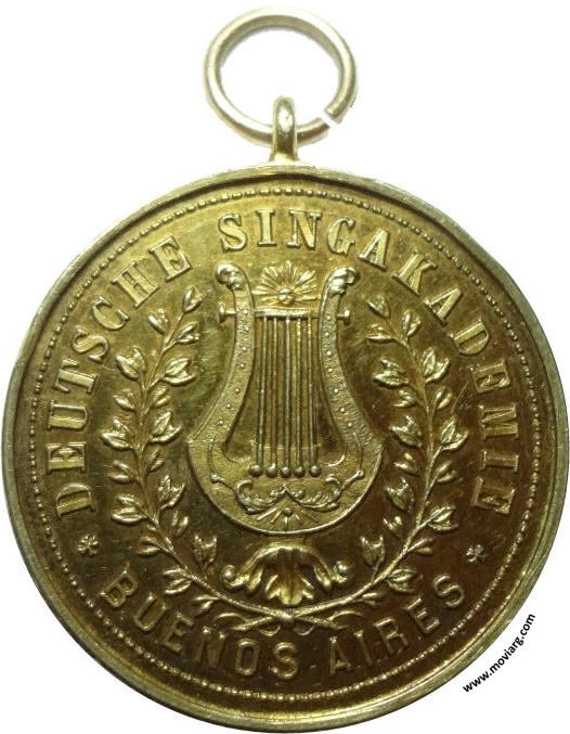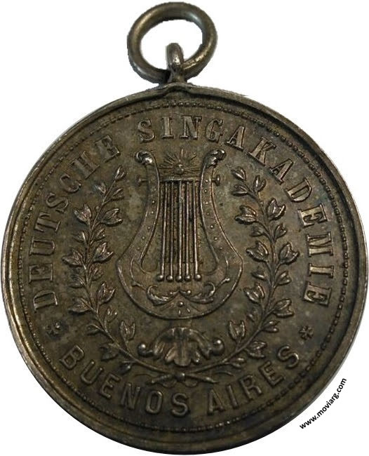 Anverso: DEUTSCHE SINGAKADEMIE / BUENOS AIRES Reverso: ZUR ERINNERUNG AN DAS 100. CONCERT / GEWIDMET / VON DER / DEUTSCHEN / COLONIE. / JANUAR 1889. Firma: GRANDE Canto: Liso Referencia: ROSA-597 FERRARI-155 (RG) | |