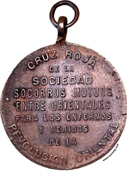Anverso: PATRIA Y CARIDAD / BUENOS AIRES - ABRIL DE 1897. Firma: ORZALI B. Y C. Reverso: CRUZ ROJA / DE LA / SOCIEDAD / SOCORROS MUTUOS / ENTRE ORIENTALES / PARA LOS ENFERMOS / Y HERIDOS / DE LA / REVOLUCION ORIENTAL Referencia: | |