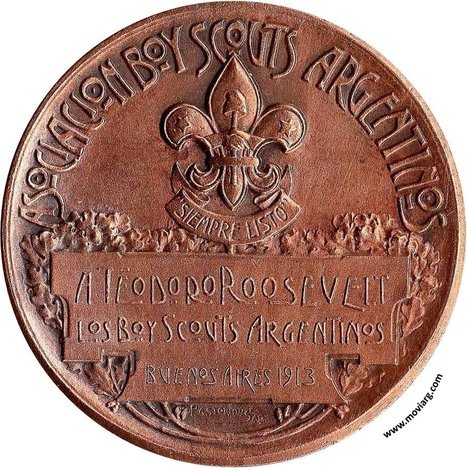 Anverso: EL TAMBOR DE TACUARY / "SIEMPRE LISTO" Reverso: ASOCIACION BOY SCOUTS ARGENTINOS / A TEODORO ROOSEVELT / LOS BOYS SCOUTS ARGENTINOS / BUENOS AIRES 1913. Campo: "SIEMPRE LISTO". Firma: PASTORINO Y SALA Referencia: | |