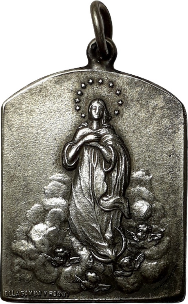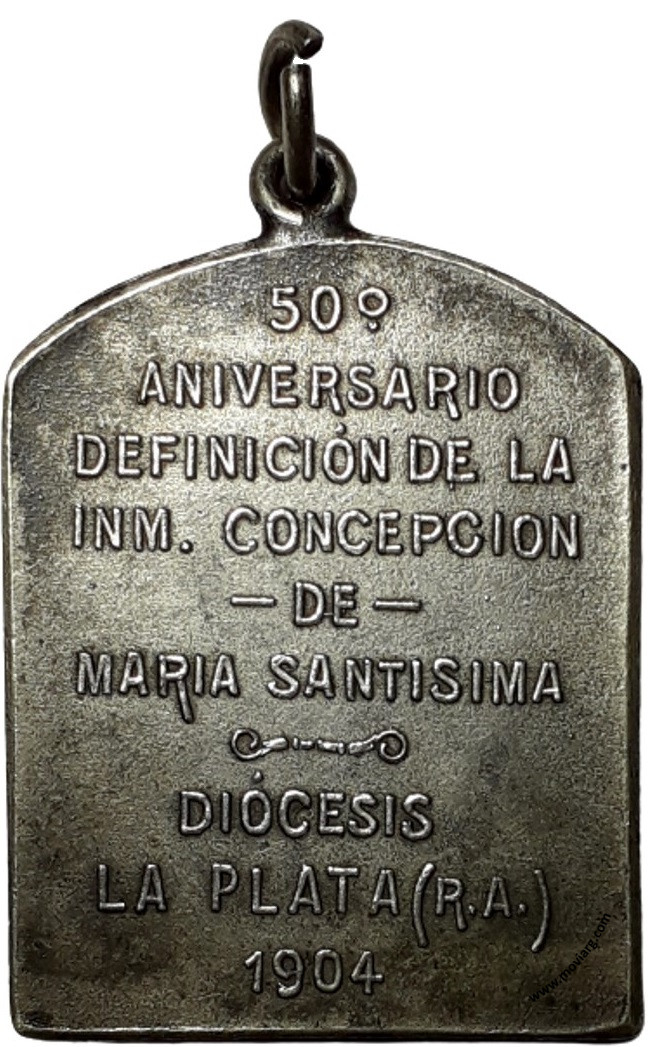 Anverso: Firma: BELLAGAMBA Y ROSSI Reverso: 50° / ANIVERSARIO / DEFINICIÓN DE LA / INM. CONCEPCION / DE / MARIA SANTISIMA / DIÓCESIS / LA PLATA ( R.A. ) / 1904 Referencia: | |