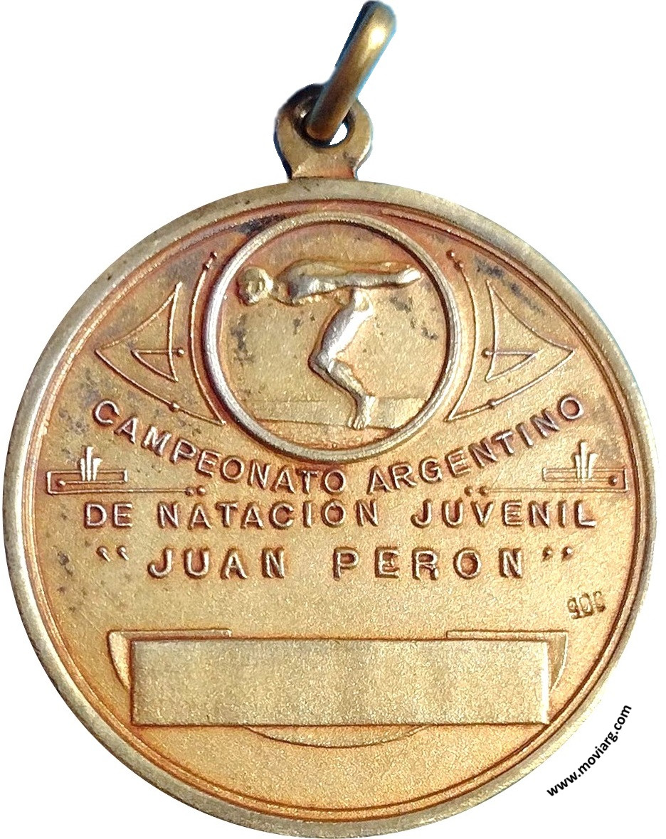 Anverso: DEPORTES JUVENILES / JUAN PERON Reverso: CAMPEONATO ARGENTINO / DE NATACION JUVENIL / " JUAN PERON ". Exergo: [ 900 ] Referencia: | |