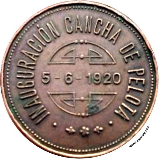 Colección @parryyanumismatico Anverso: CLUB / BELGRANO. Firma: CONST. ROSSIReverso: INAUGURACIÓN CANCHA DE PELOTA / 5 - 6 - 1920 Referencia: | |