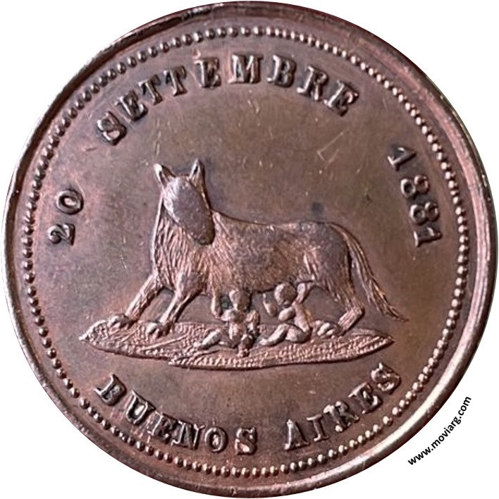 Anverso: 20 SETTEMBRE 1881 / BUENOS AIRES Reverso: XI° ANNIVERSARIO / DELLA LIBERAZIONE / DI / ROMA Referencia: | |