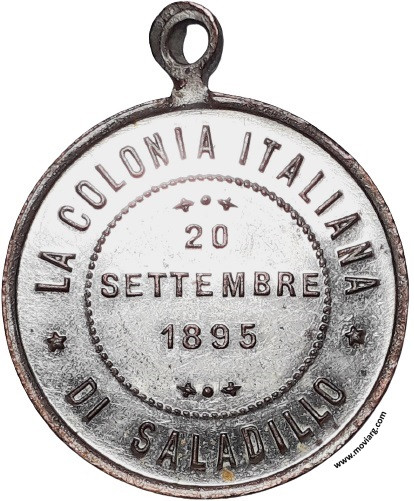 Anverso: LA COLONIA ITALIANA / DI SALADILLO / 20 / SETTEMBRE / 1895 Reverso: COMMEMORAZIONE DEL XXV ANNIVERSARIO / DELLA LIBERAZIONE DI ROMA. Firma: PODESTA & H. Referencia: | |