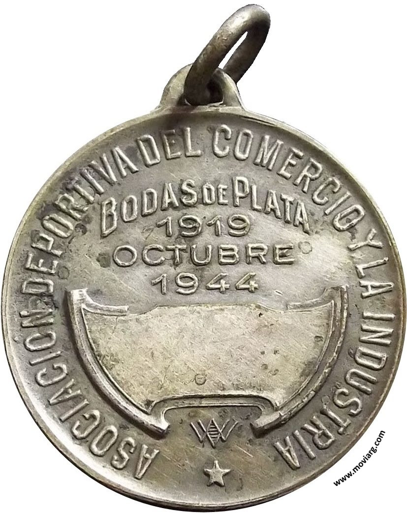 Anverso: Firma: CONSTANTE ROSSI Reverso: ASOCIACIÓN DEPORTIVA DEL COMERCIO Y LA INDUSTRIA / BODAS DE PLATA / 1919 / OCTUBRE / 1944. Firma: W V Referencia: | |