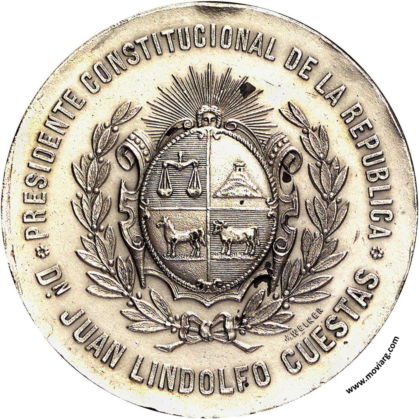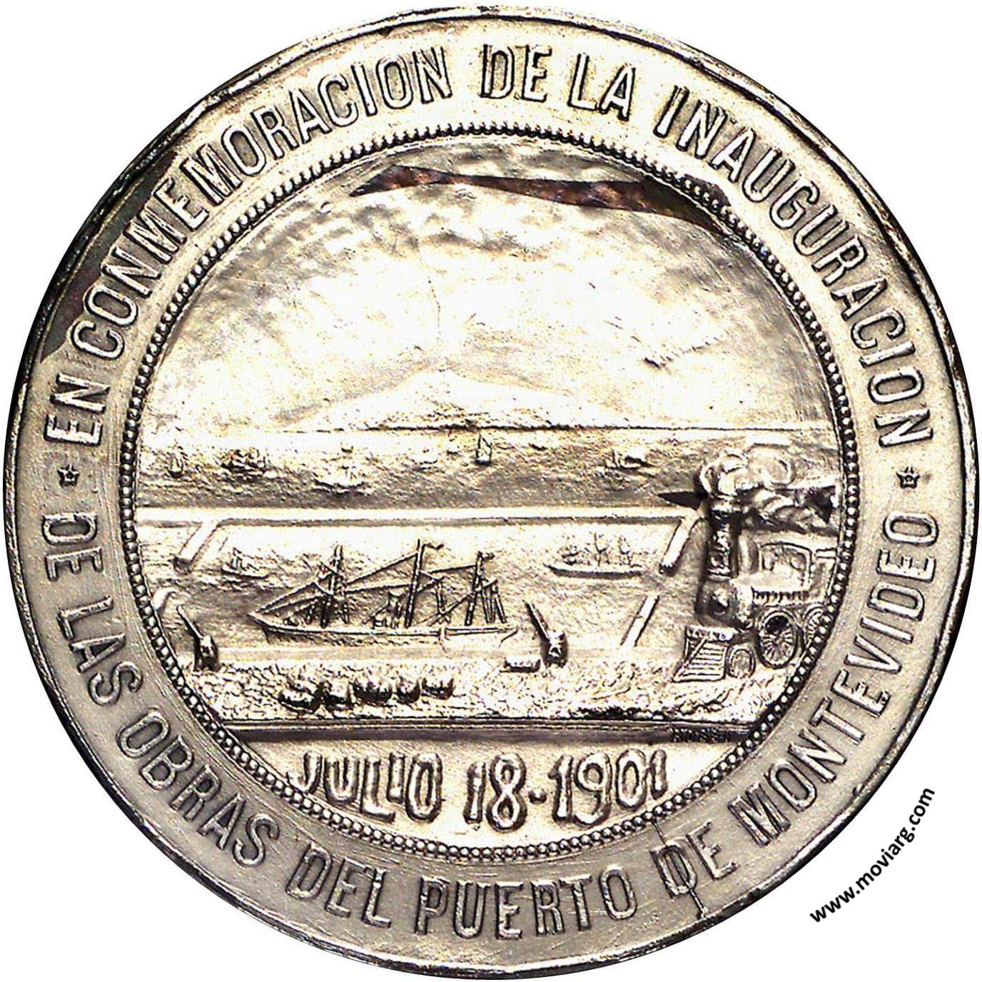 Anverso: PRESIDENTE CONSTITUCIONAL DE LA REPUBLICA / DN. JUAN LINDOLFO CUESTAS. Firma: J. WELKER Reverso: EN CONMEMORACION DE LA INAUGURACION / DE LAS OBRAS DEL PUERTO DE MONTEVIDEO / JULIO 18 1901 Referencia: | |