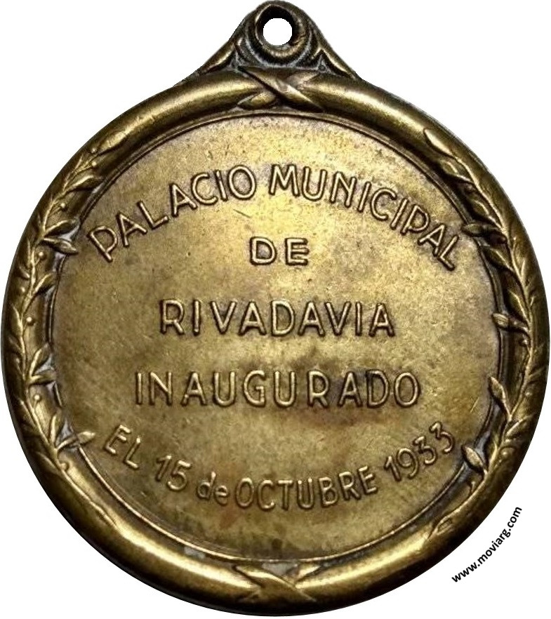 Colección @parryyanumismatico Anverso: Firma: GOTTUZZO Y PIANAReverso: PALACIO MUNICIPAL / DE / RIVADAVIA / INAUGURADO / EL 15 DE OCTUBRE 1933 Referencia: | |