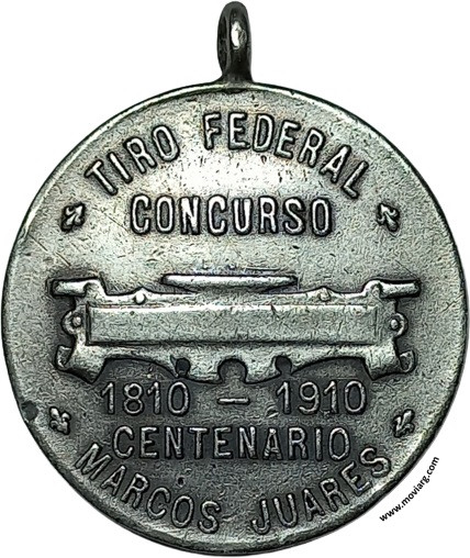 Anverso: Reverso: TIRO FEDERAL / MARCOS JUARES (sic) / CONCURSO / 1810 - 1910 / CENTENARIO Canto: Liso. PLATA Referencia: | |