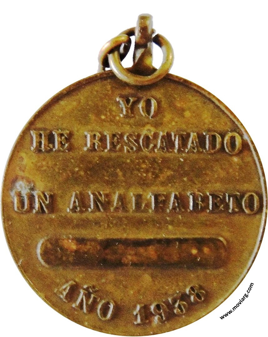 Anverso: CAMPAÑA DE ALFABETIZACION / MENDOZA / DIREC. GRAL. DE ESCUELAS. Firma: (???) PPOLI Reverso: YO / HE RESCATADO / UN ANALFABETO / AÑO 1938 Referencia: | |