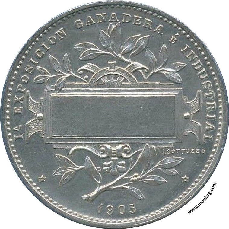 | Año: 1905 Exposiciones Metal: Plateado - Módulo: 40mm Grabador: Juan Gottuzzo | |