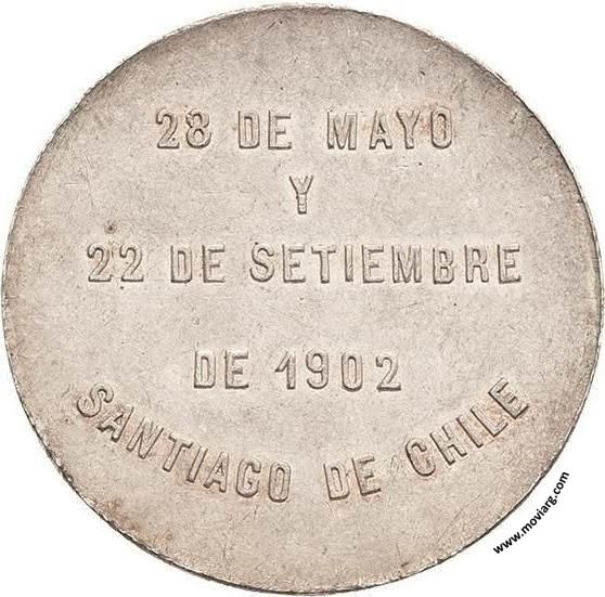 Anverso: Reverso: 28 DE MAYO / Y / 22 DE SEPTIEMBRE / DE 1902 / SANTIAGO DE CHILE Referencia: | |