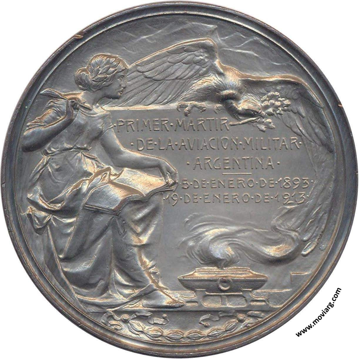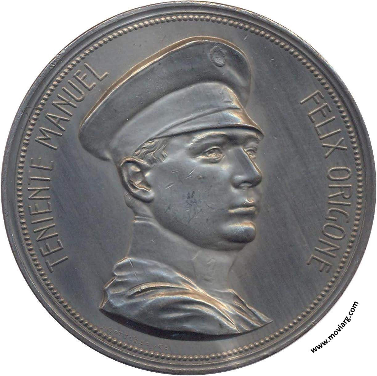 Anverso: TENIENTE MANUEL / FELIX ORIGONE. Firma: J. GOTTUZZO Y CA. Reverso: PRIMER MARTIR / DE LA AVIACION MILITAR / ARGENTINA / 5 DE ENERO DE 1893 / 19 DE ENERO DE 1913 Referencia: | |