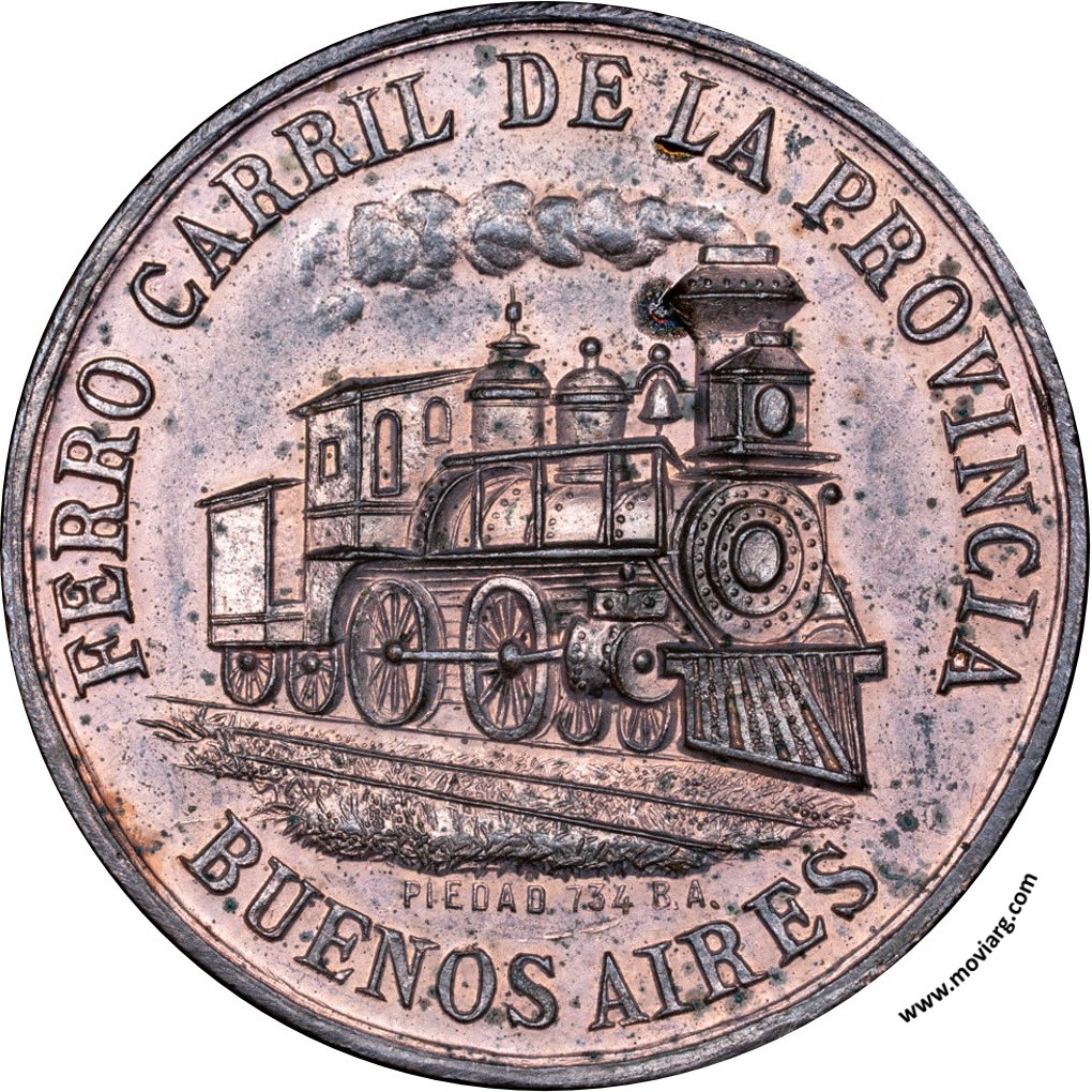 | Año: 1889 Ferrocarriles Metal: Cobre - Peso: 9gr - Módulo: 30mm Grabador: (Camilo Tirone y Luis Valsecchi) | |