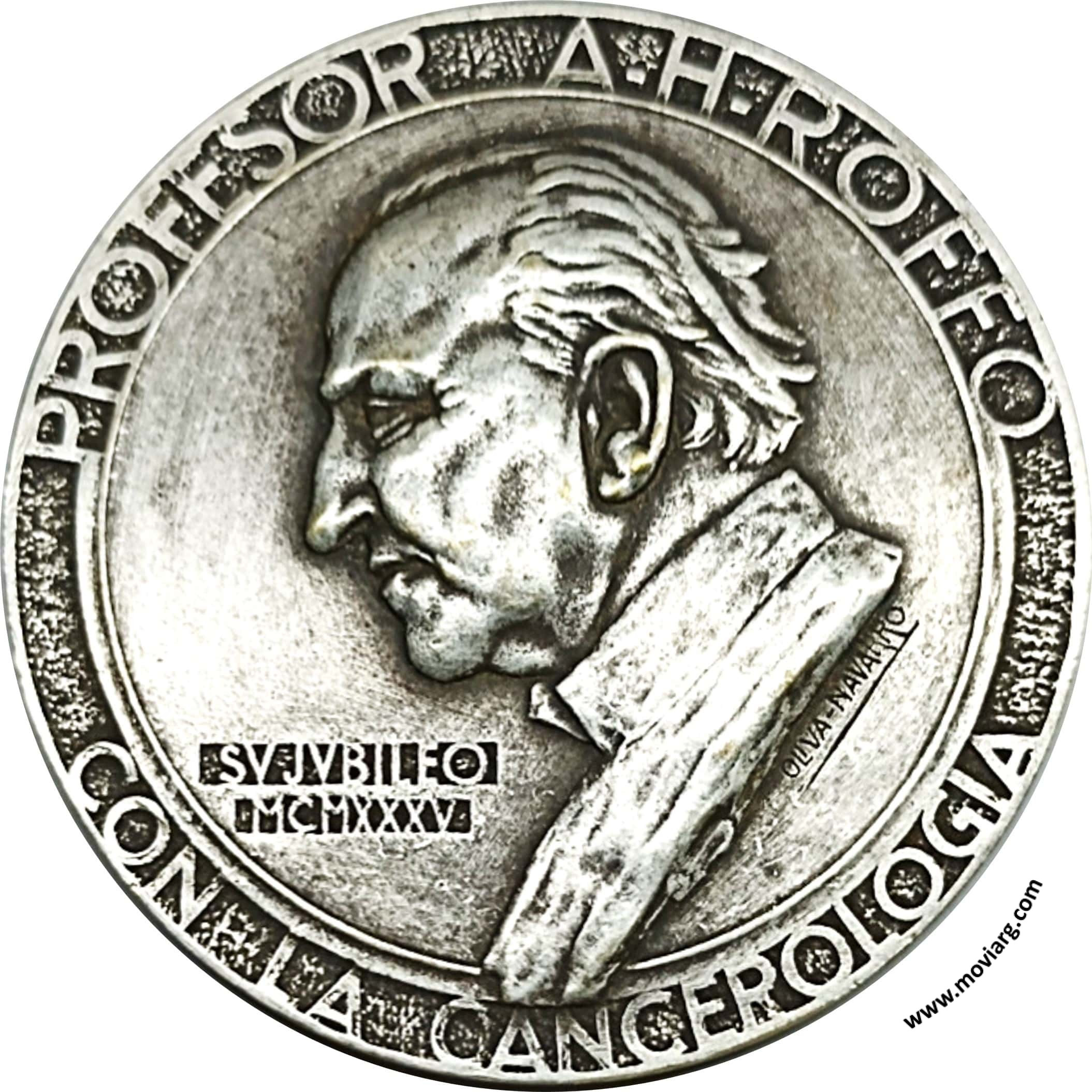 Anverso: PROFESOR A. H. ROFFO / CON LA CANCEROLOGIA / SU JUBILEO / MCMXXXV. Firma: OLIVA NAVARRO Reverso: ALIIS QUI LABORES MEDETUR ADIPISCITUR GLORIAM / LA COMISION DE / HOMENAJE. Firma: O. N. Referencia: | |