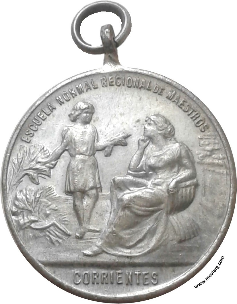 Anverso: ESCUELA NORMAL REGIONAL DE MAESTROS / CORRIENTES Reverso: COLOCACION DE LA PIEDRA FUNDAMENTAL / PRESIDENTE / DE LA REPÚBLICA / TTE. GRAL. / JULIO A. ROCA / MINISTRO DE JUSTICIA / E INSTRUCCION PÚBLICA / DR. JUAN R. FERNANDEZ / 25 SEPTIEMBRE / 1904 Referencia: | |