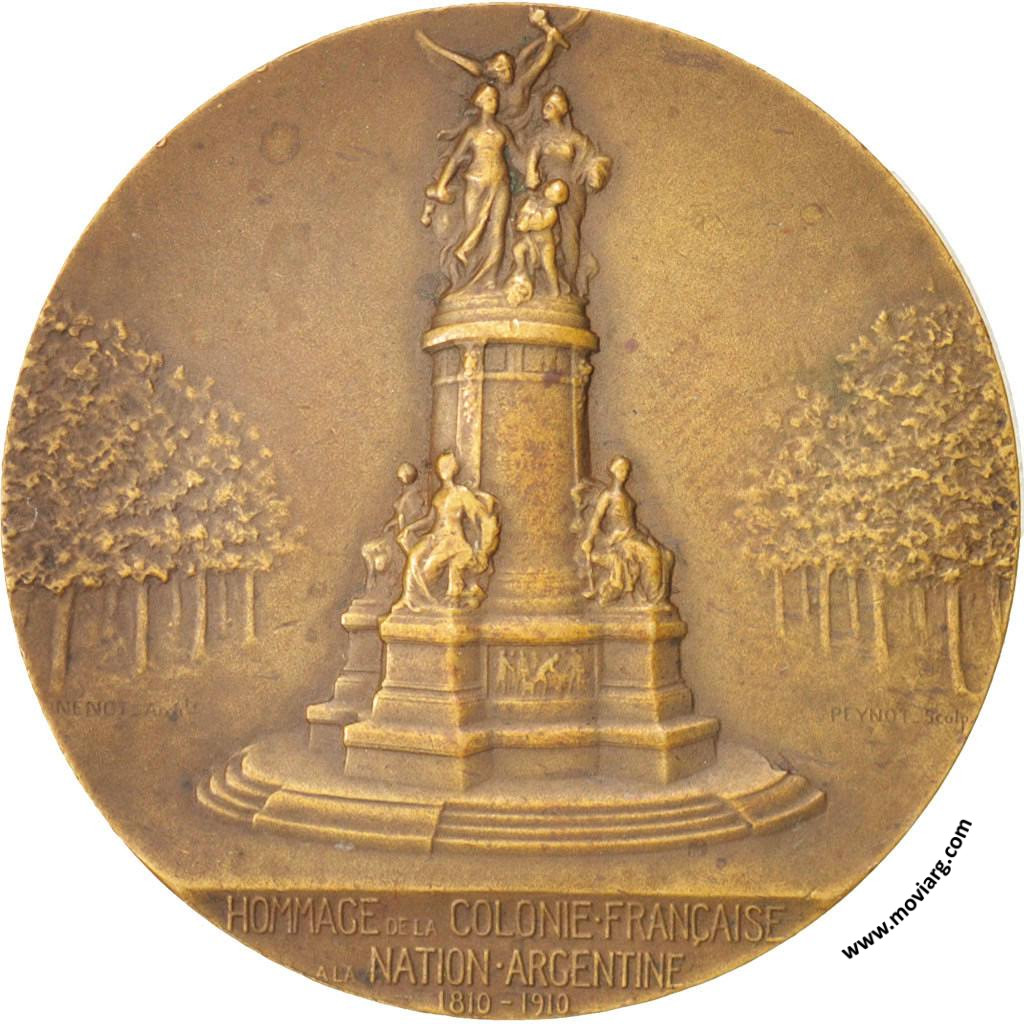 Anverso: HOMMAGE DE LA COLONIE FRANÇAISE / A LA NATION ARGENTINE / 1810 - 1910. Firma: NÉNOT ARCHTE. / PEYNOT SCULP. Reverso: COMITÉ FRANÇAIS / DU / CENTENAIRE Referencia: | |