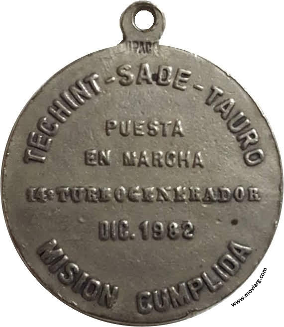 Colección Claudio Gilabert Anverso: Campo: TSTReverso: TECHINT - SADE - TAURO / PUESTA / EN MARCHA / 14° TURBO GENERADOR / DIC. 1982 / MISION CUMPLIDA. Exergo: [ ALPACA ] Referencia: | |