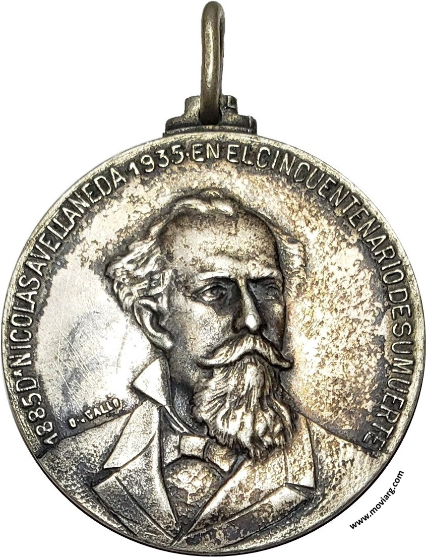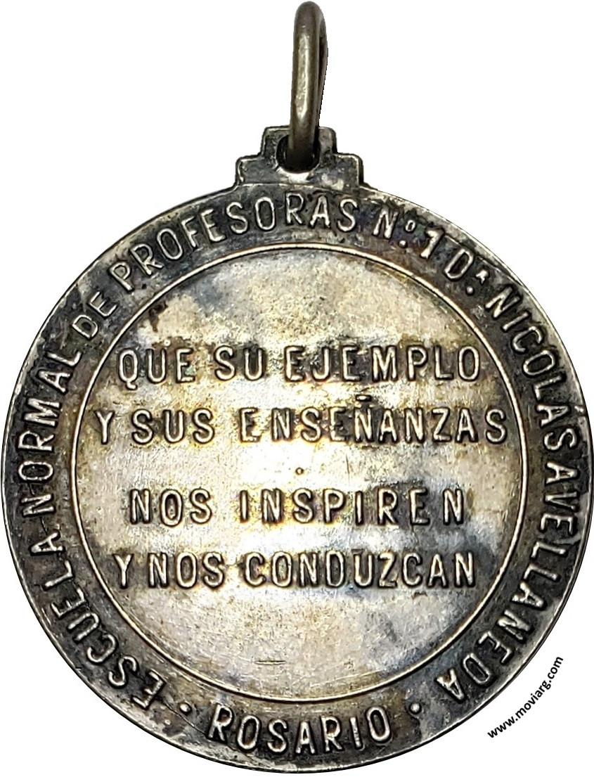 Anverso: 1885 DR. NICOLAS AVELLANEDA 1935 EN EL CINCUENTENARIO DE SU MUERTE. Firma: O. GALLO Reverso: ESCUELA NORMAL DE PROFESORAS N°1 DR. NICOLÁS AVELLANEDA / ROSARIO / QUE SU EJEMPLO / Y SUS ENSEÑANZAS / NOS INSPIREN / Y NOS CONDUZCAN Referencia: | |