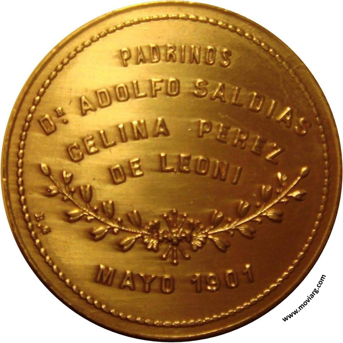Anverso: FUNDACION HOSPITAL DE CARIDAD / JUNIN Reverso: PADRINOS / DR. ADOLFO SALDIAS / CELINA PEREZ / DE LEONI / MAYO 1901. Firma: R.G. Referencia: FERRARI-304 (RG) | |