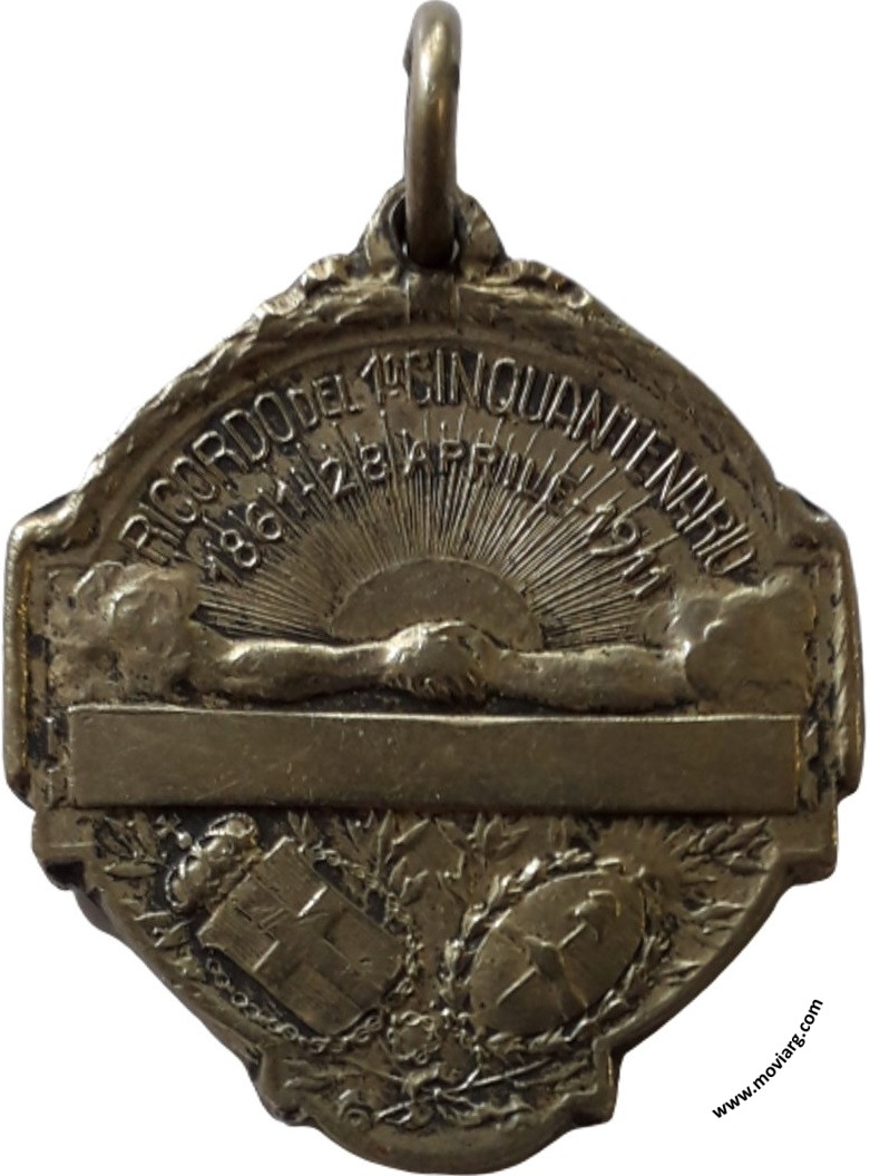 Colección MDS Anverso: SOCIETÁ ITALIANA / UNIONE E BENEVOLENZA / ROSARIOReverso: RICORDO DEL 1° CINQUANTENARIO / 1861 - 28 APRILE - 1911 Referencia: | |