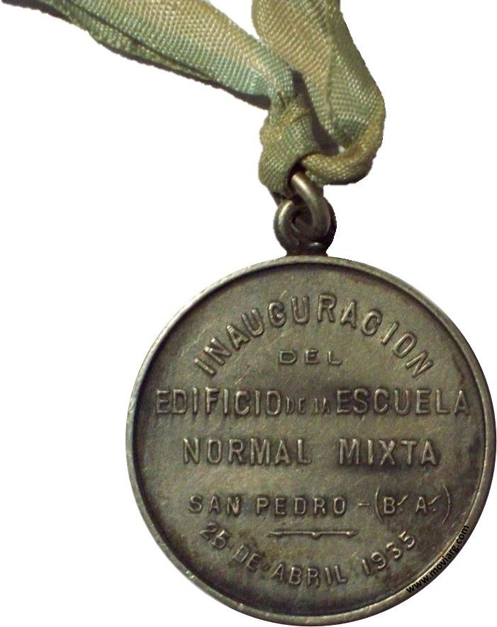 Anverso: Reverso: INAUGURACION / DEL / EDIFICIO DE LA ESCUELA / NORMAL MIXTA / SAN PEDRO - ( BS. AS. ) / 25 DE ABRIL 1935 Referencia: | |