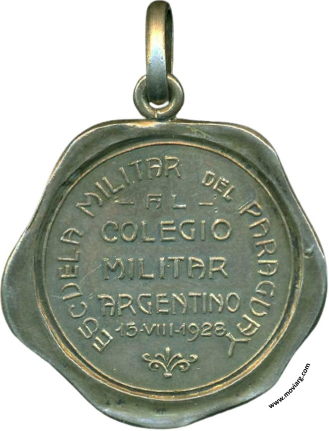 Anverso: REPUBLICA DEL PARAGUAY Reverso: ESCUELA MILITAR DEL PARAGUAY / AL / COLEGIO / MILITAR / ARGENTINO / 15 - VIII - 1928 Referencia: | |