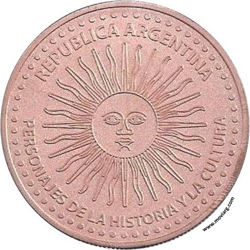 Anverso: 2 DE ABRIL. DIA DEL VETERANO Y DE LOS CAIDOS EN LA GUERRA DE MALVINAS. Campo: 1 OUNCE / .999 / FINE / COPPER Reverso: REPUBLICA ARGENTINA / PERSONAJES DE LA HISTORIA Y LA CULTURA Referencia: | |