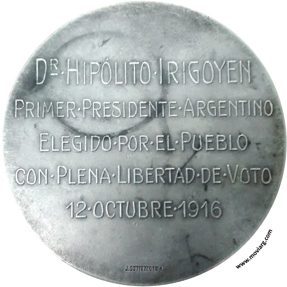Anverso: Firma: Q. PIANA Reverso: DR. HIPÓLITO IRIGOYEN / PRIMER PRESIDENTE ARGENTINO / ELEGIDO POR EL PUEBLO / CON PLENA LIBERTAD DE VOTO / 12 OCTUBRE 1916. Firma: [ J. GOTTUZZO Y CIA ] Referencia: | |