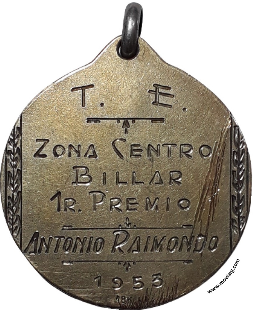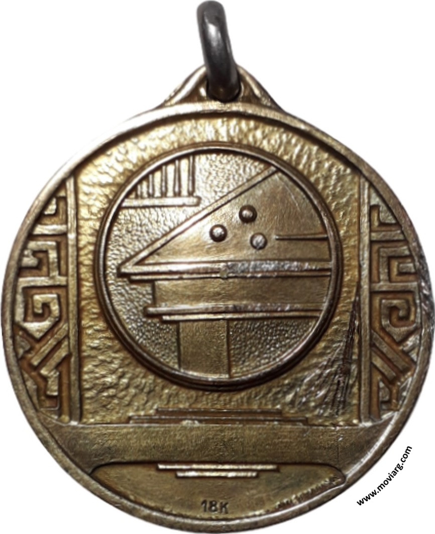 Colección MDS Anverso: Campo: [ 18K ]. Firma: ARGENTINAReverso: [ T. E. ] / [ ZONA CENTRO ] / [ BILLAR ] / [ 1R. PREMIO ] / [ ANTONIO RAIMONDO ] / [ 1953 ]. Exergo: [ 18K ] Canto: Liso. 900 Referencia: | |