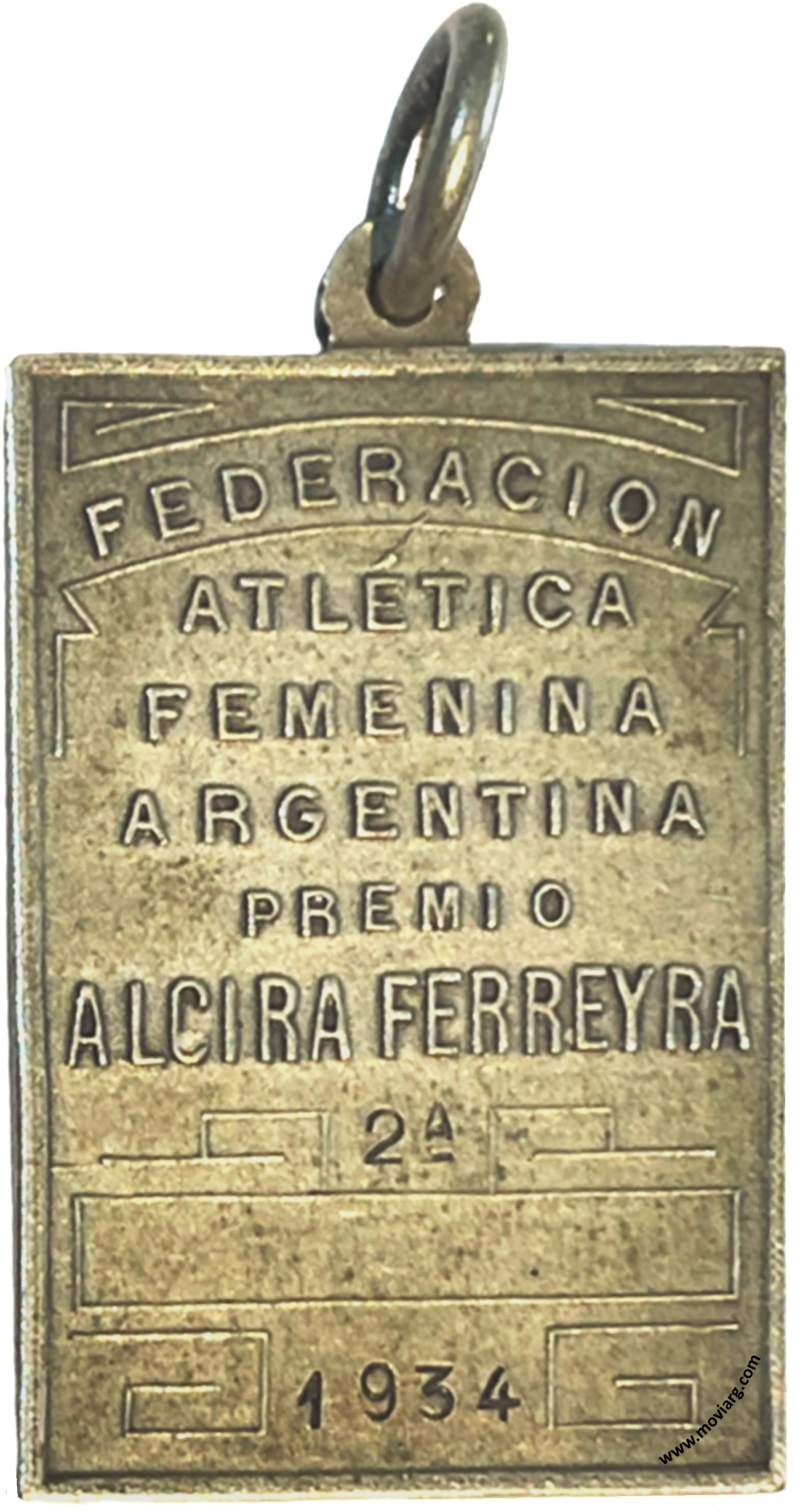 Anverso: Firma: PASTORINO Y / SALA Reverso: FEDERACION / ATLÉTICA / FEMENINA / ARGENTINA / PREMIO / ALCIRA FERREYRA / [ 2A ] / [ 1934 ] Referencia: | |
