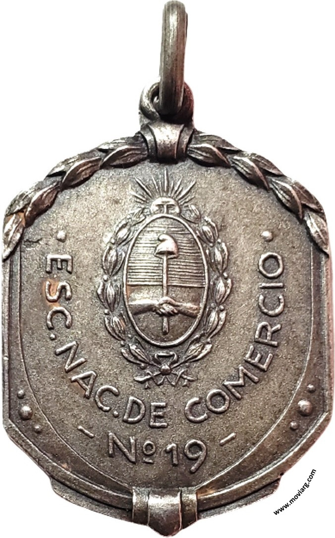 Anverso: ESC. NAC. DE COMERCIO / N° 19 Reverso: PERITO / MERCANTIL. Exergo: [ 900 ] / [ INDUSTRIA ] / [ ARGENTINA ] Referencia: | |