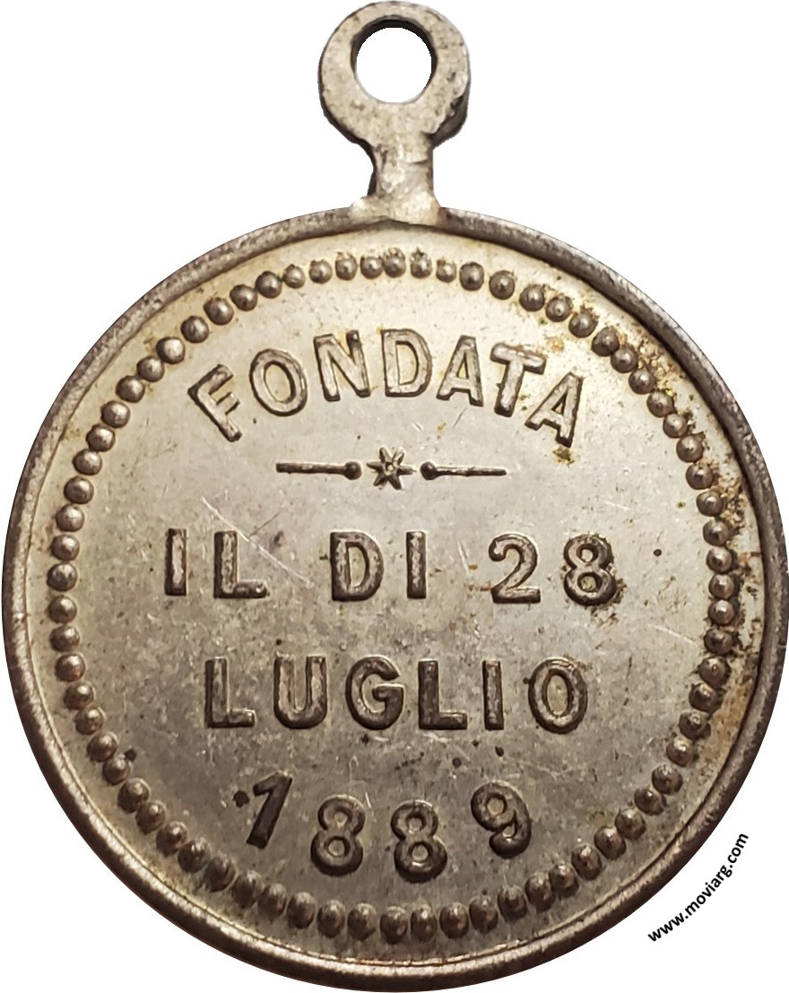 Anverso: SOCIETÁ DI M. S. UNIONE E BENEVOLENZA / TRES / ARROYOS Reverso: FONDATA / IL DI 28 / LUGLIO / 1889 Referencia: | |