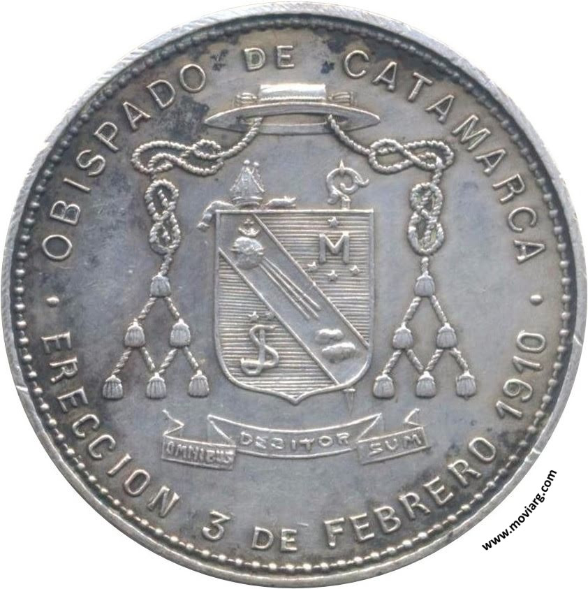 Anverso: OBISPADO DE CATAMARCA / ERECCION 3 DE FEBRERO 1910. Campo: OMNIBUS / DEBITOR / SUM Reverso: PRIMER OBISPO / MONSEÑOR / BERNABÉ / PIEDRABUENA / TOMÓ POSESION / EL 30 ABRIL 1911 Referencia: | |
