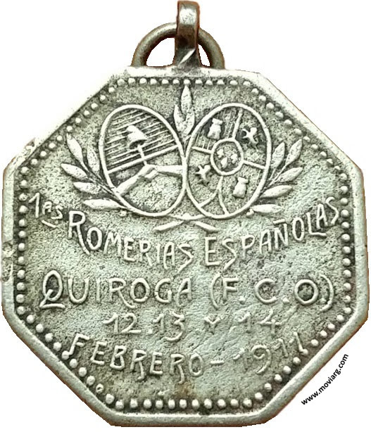 Colección Matías Losinno Anverso:Reverso: 1AS. ROMERIAS ESPAÑOLAS / QUIROGA ( F.C.O. ) / 12. 13 Y 14 / FEBRERO - 1911 Referencia: | |