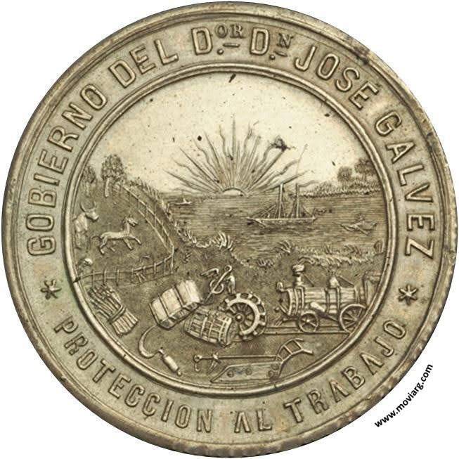 Anverso: GOBIERNO DEL DOR. DN. JOSE GALVEZ / PROTECCION AL TRABAJO Reverso: PREMIO AL TRABAJO EXPOSICN. Y FERIA DE LA PROVINCIA / STA. FE. 1887 / 1A. CLASE. Firma: CACCIA Canto: INSTITO. NACL. DE GRABADOS - ??? CIA GRABADOR DE GOBIERNO Referencia: FERRARI-63 (SC) | |