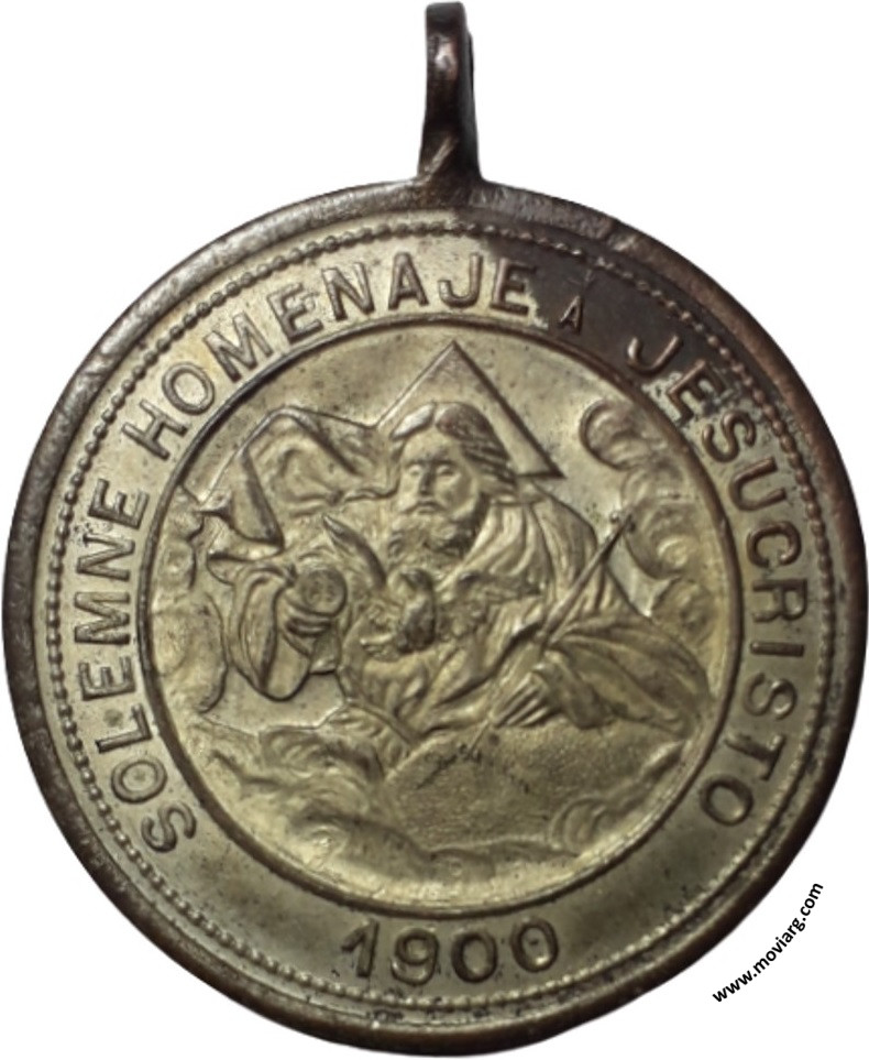 | Año: 1900 Religión Metal: Plateado - Peso: 9.61gr - Módulo: 30.66mm - Espesor: 1.86mm - Rotación: 12hrs Grabador: Ignacio Orzali, José Bellagamba y Constante Rossi | |