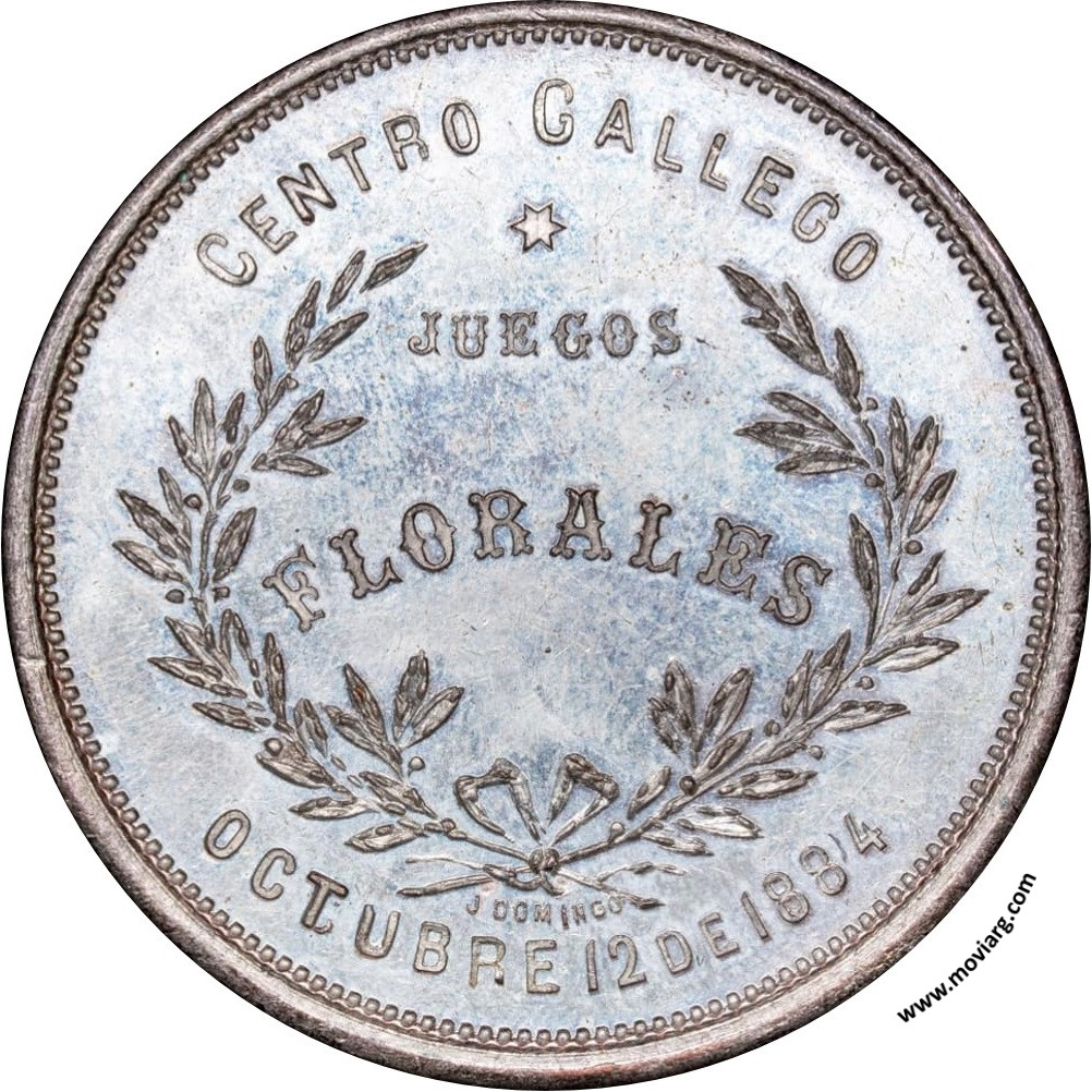 Anverso: PREMIO / AL / MERITO / LA COLONIA ESPAÑOLA DE LA C. DEL URUGUAY Reverso: CENTRO GALLEGO / JUEGOS / FLORALES / OCTUBRE 12 DE 1884. Firma: J. DOMINGO Referencia: | |