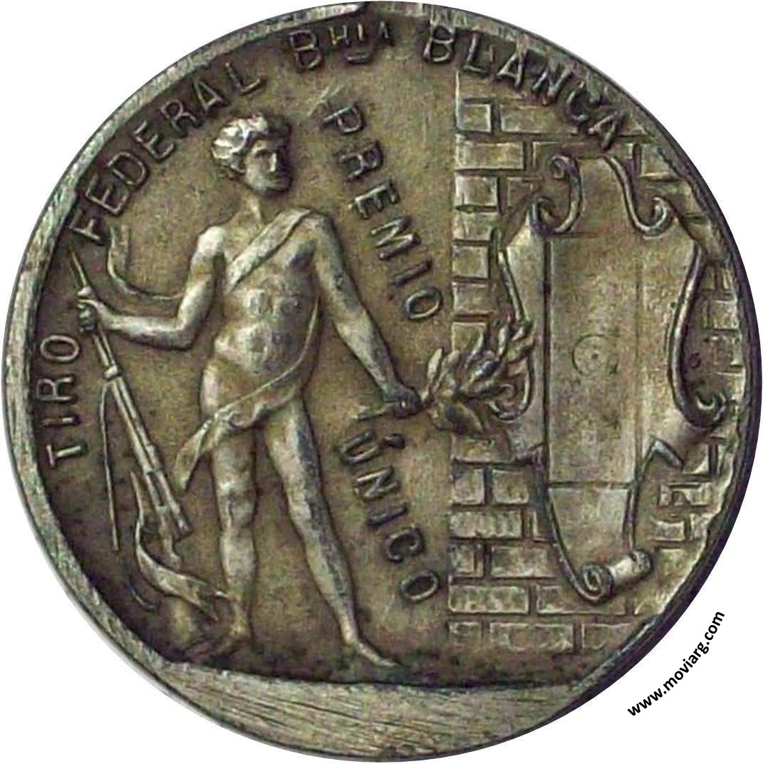 Anverso: TIRO FEDERAL BHIA. BLANCA / PREMIO / ÚNICO Reverso: TTE. GRAL. BARTOLOMÉ MITRE / 1821 / JUNIO 26 / 1901 Referencia: | |