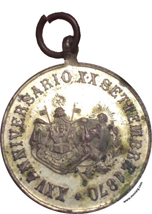 Anverso: 20 SETTEMBRE 1895 / LOMAS DE ZAMORA Reverso: XXV ANNIVERSARIO XX SETTEMBRE 1870 Referencia: | |