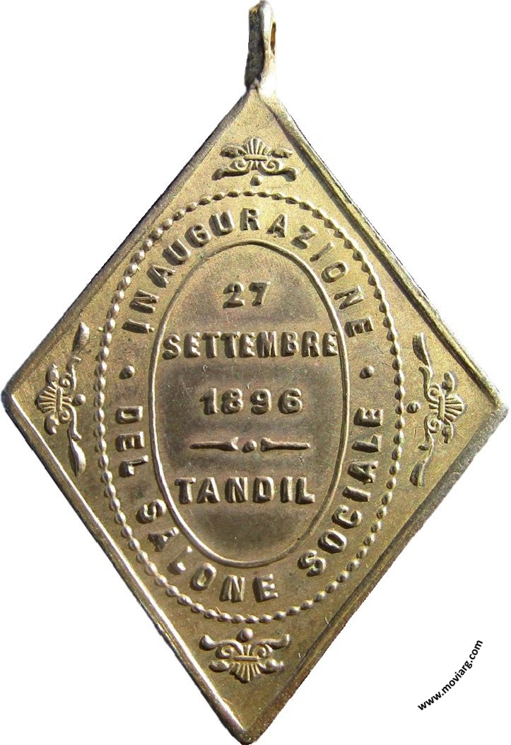 Anverso: SOCIETÁ UNIONE ITALIANA / TANDIL Reverso: INAUGURAZIONE / DEL SALONE SOCIALE / 27 / SETTEMBRE / 1896 / TANDIL Referencia: FERRARI-22 (TN) | |