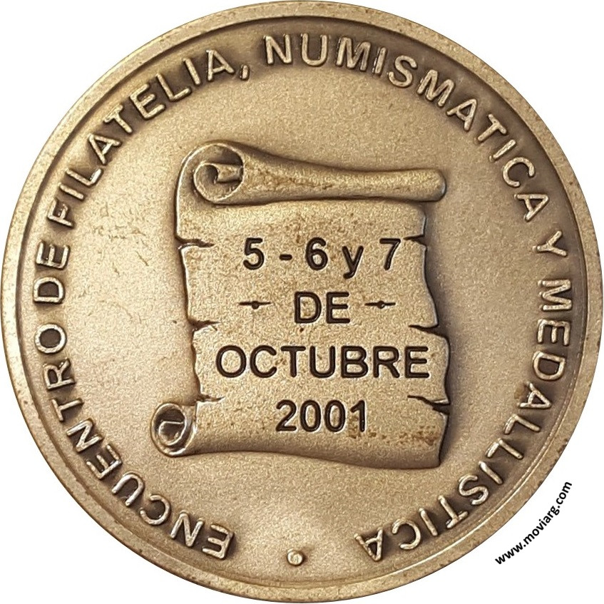 Anverso: CENTRO FILATELICO Y NUMISMATICO / " CARLOS / MARIO / PINTO " / OLAVARRIA. Firma: RUIZ Reverso: ENCUENTRO DE FILATELIA, NUMISMATICA Y MEDALLISTICA / 5 - 6 Y 7 / DE / OCTUBRE / 2001 Referencia: | |