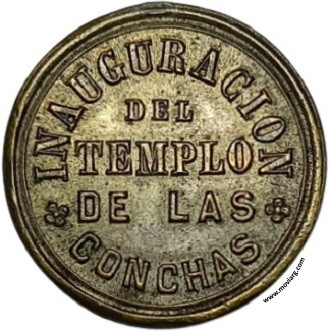 Anverso: INAUGURACION / DEL / TEMPLO / DE LAS / CONCHAS Reverso: LA COMISION AUXILIAR DE SEÑORAS / 25 / MARZO / 1881 Referencia: | |
