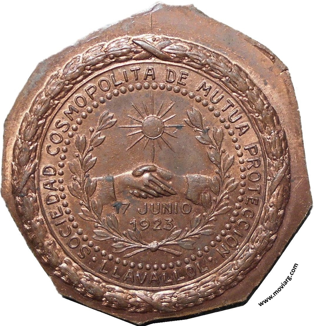 Anverso: Reverso: SOCIEDAD COSMOPOLITA DE MUTUA PROTECCION / LLAVALLOL / 17 JUNIO / 1923 Referencia: | |