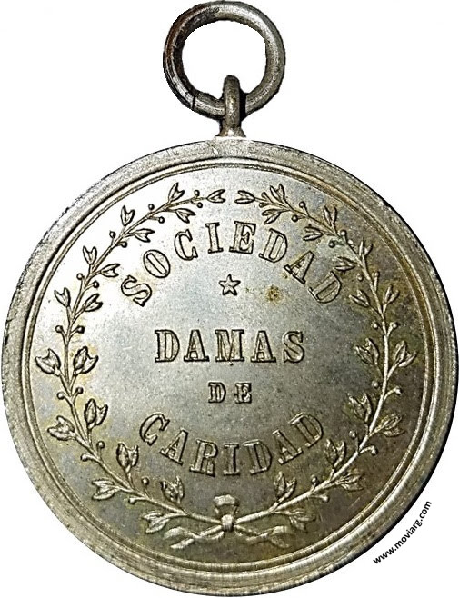 Anverso: SOCIEDAD / DAMAS / DE / CARIDAD Reverso: BENDICION DE LA PIEDRA ASILO MATERNAL DEL SUD / 9 / DICIEMBRE / 1883 Canto: Humberto Burzio: "Buenos Aires en la medalla" 1981 p1010. Referencia: BURZIO-3177 | |