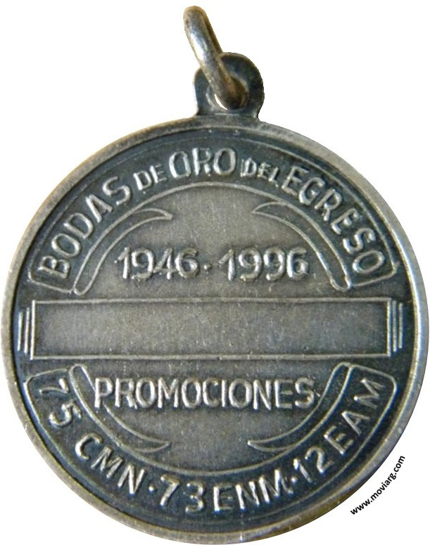 Anverso: FUERZAS ARMADAS / REPUBLICA ARGENTINA Reverso: BODAS DE ORO DEL EGRESO / 75 CMN · 73 ENM · 12 EAM / 1946 · 1996 / PROMOCIONES Referencia: | |