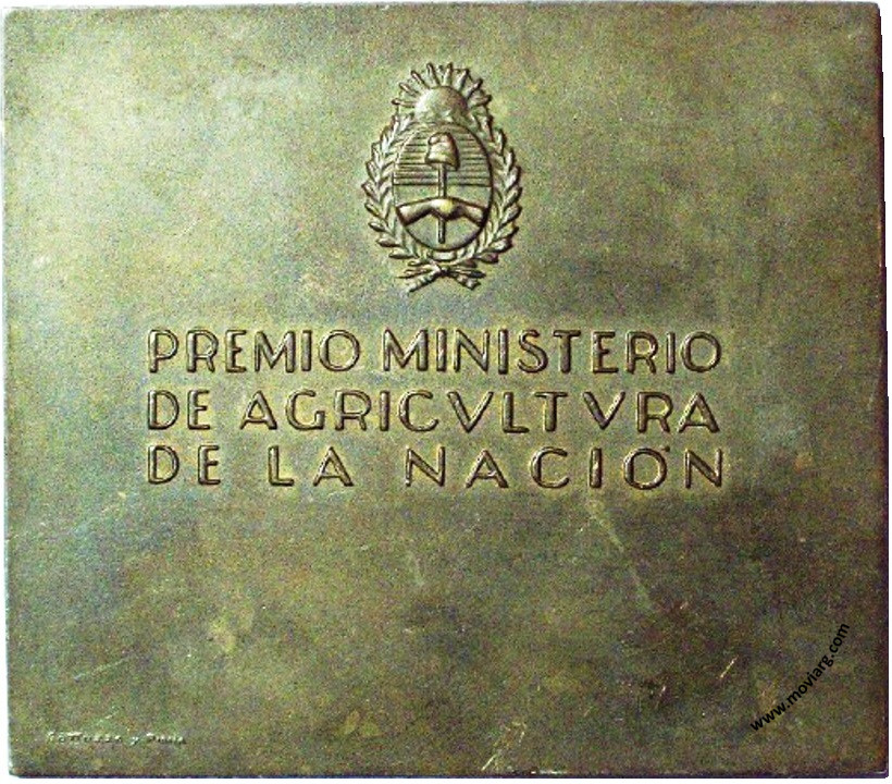 Anverso: REPUBLICA / ARGENTINA / PAMPAS / ANDES / RIOS / LAGOS / SIERRAS / BOSQUES / MINISTERIO / D / E / AGRICULTURA / Y GANADERIA / DE LA NACION. Firma: LEGUIZAMON Reverso: PREMIO MINISTERIO / DE AGRICULTURA / Y GANADERIA / DE LA NACION. Firma: GOTTUZZO Y PIANA Referencia: | |