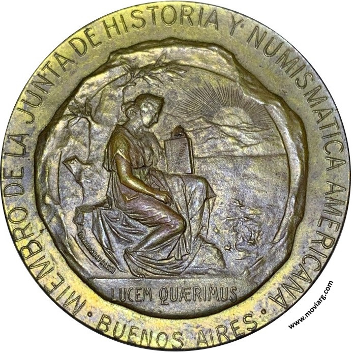 Colección Magnin Anverso: ESTANISLAO S. ZEBALLOS / 3 / XI / 1901 / 4 / X / 1923Reverso: MIEMBRO DE LA JUNTA DE HISTORIA Y NUMISMATICA AMERICANA / BUENOS AIRES. Campo: LUCEM QUÆRIMUS. Firma: BELLAGAMBA Y ROSSI Referencia: | |
