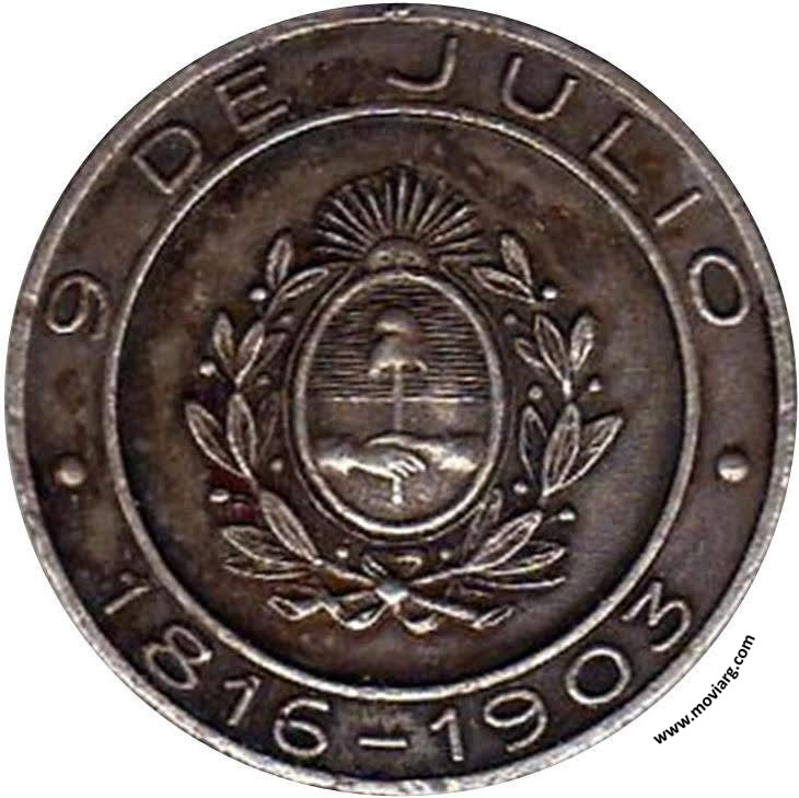 Anverso: LA COLONIA ARGENTINA / EN EL PARAGUAY. Firma: CASANOVAS Y HORTA Reverso: 9 DE JULIO / 1816 - 1903 Referencia: | |